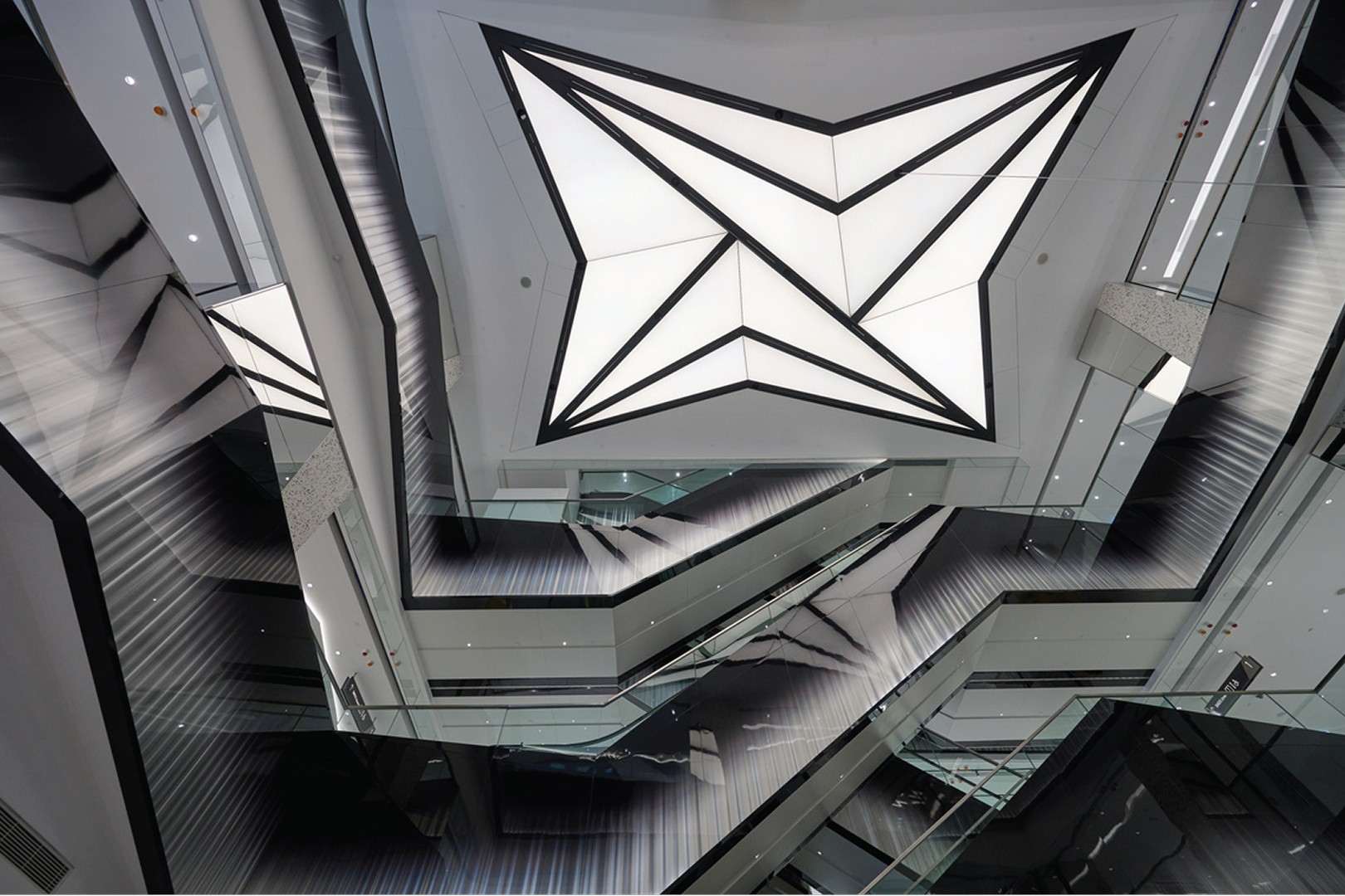 透過鐳射科技,METX將金屬邊界修飾得乾淨俐落,無多餘雜訊,讓每一道線條都帶 著清晰的方向感。適合用作入口、立面與主視覺牆,強化空間的秩序與力量感。